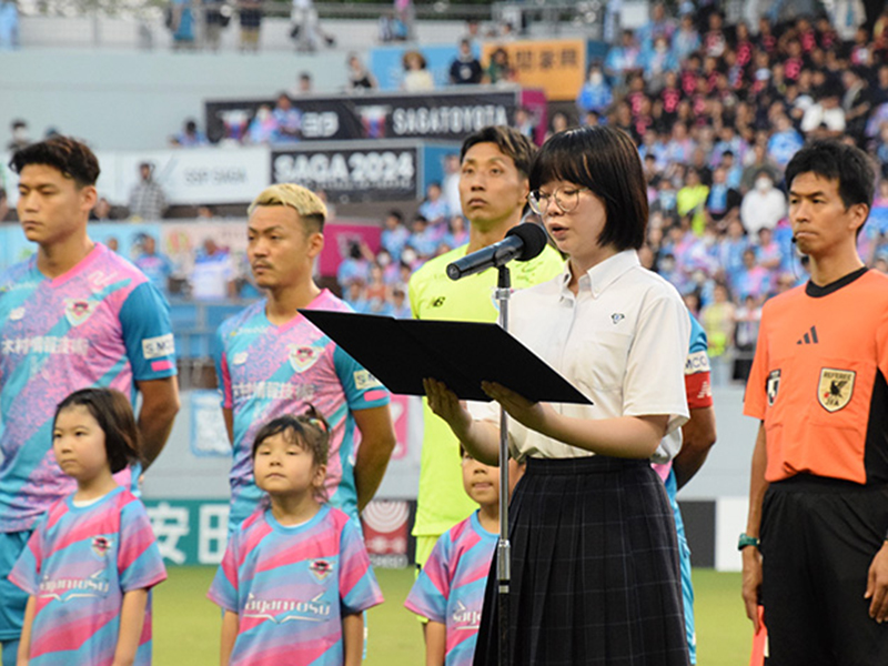 サガン鳥栖では5年前、佐賀県高校生平和大使による高校生一万人署名活動を実施し、Jクラブが平和について考えるきっかけづくり...