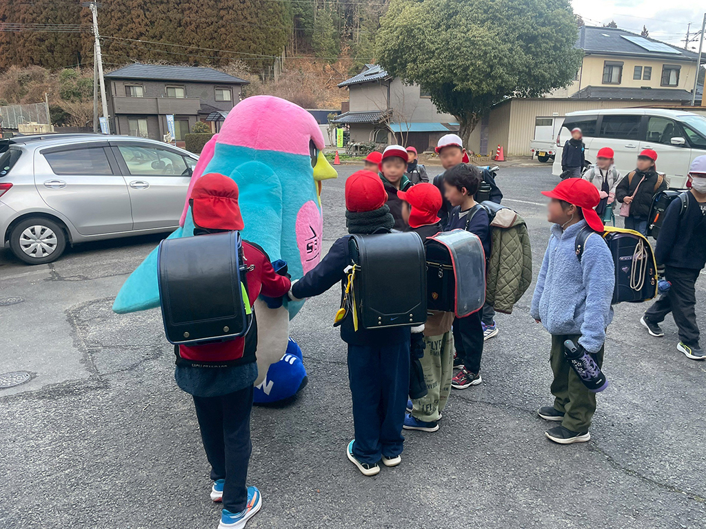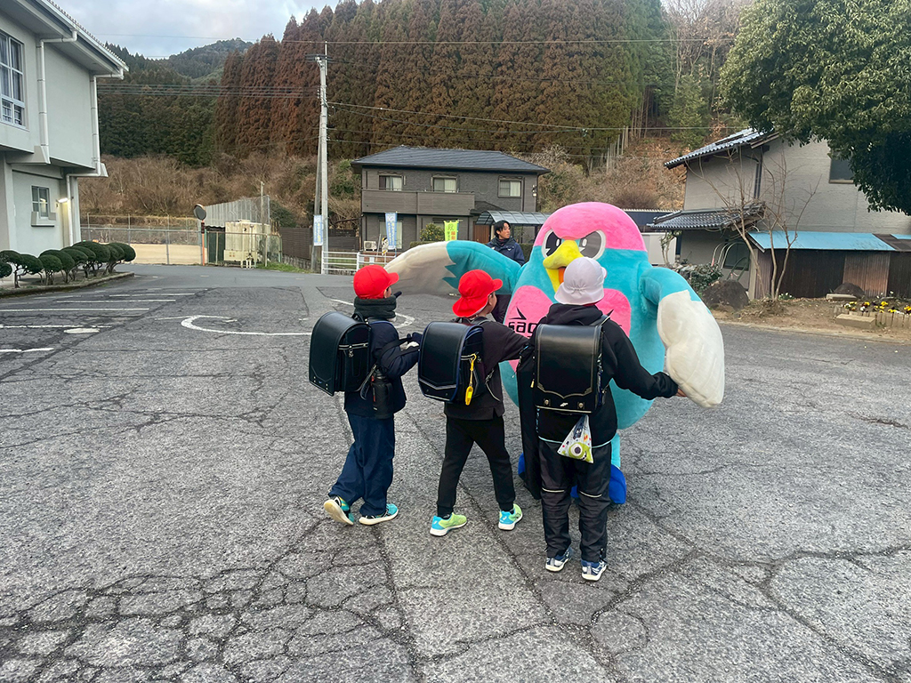 嬉野市立 五町田小学校でのあいさつ運動のようす。