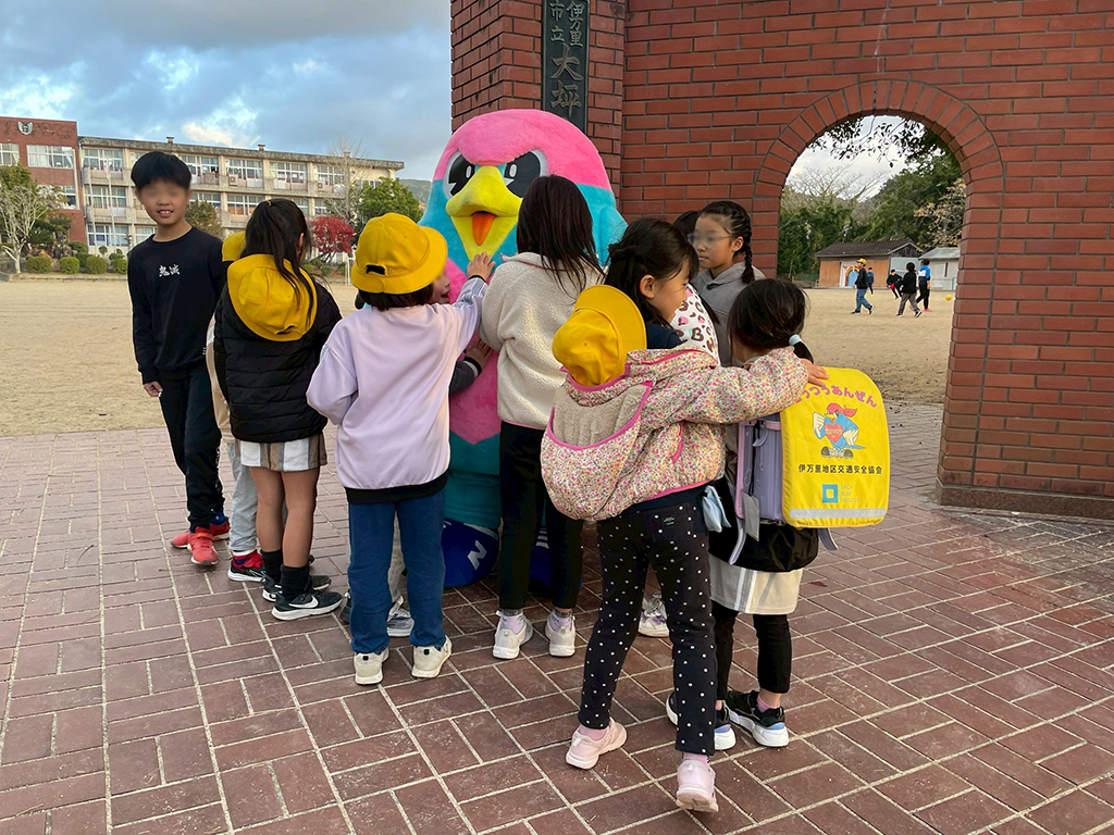 早く登校したこどもたちも一緒に「おはよう!」あいさつ