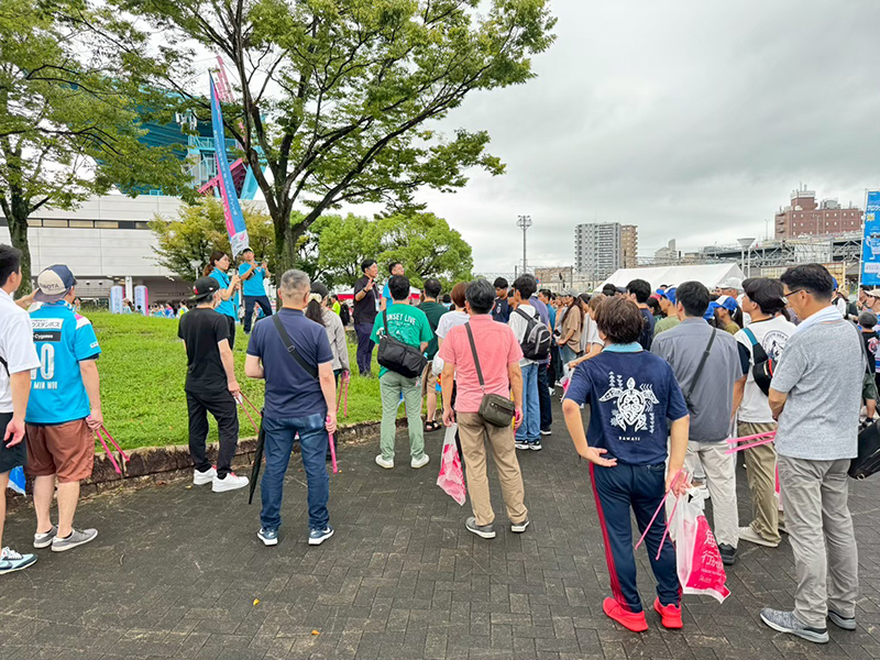 SAGANゼロカーボンチャレンジマッチに合わせたLTO活動。 この日は鳥栖市さんが募集してくださった市内の企業や団体の皆さんも一緒に活動!総勢200名でLTOは大注目を集め、情報発信にもなりました。